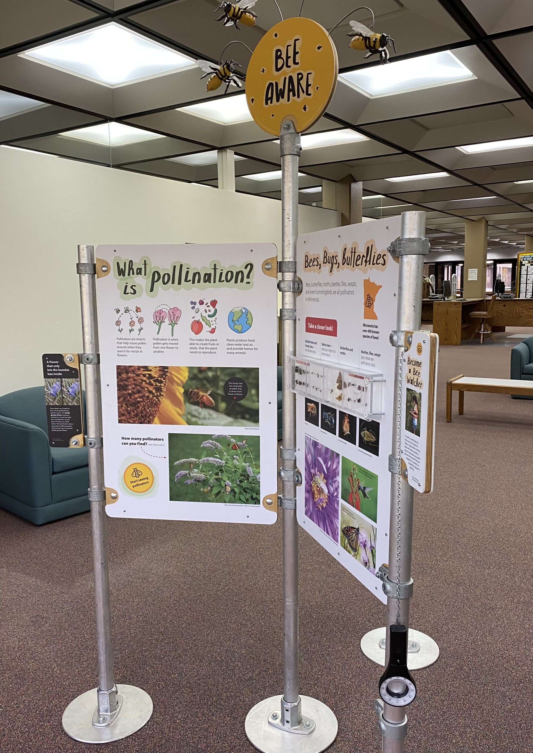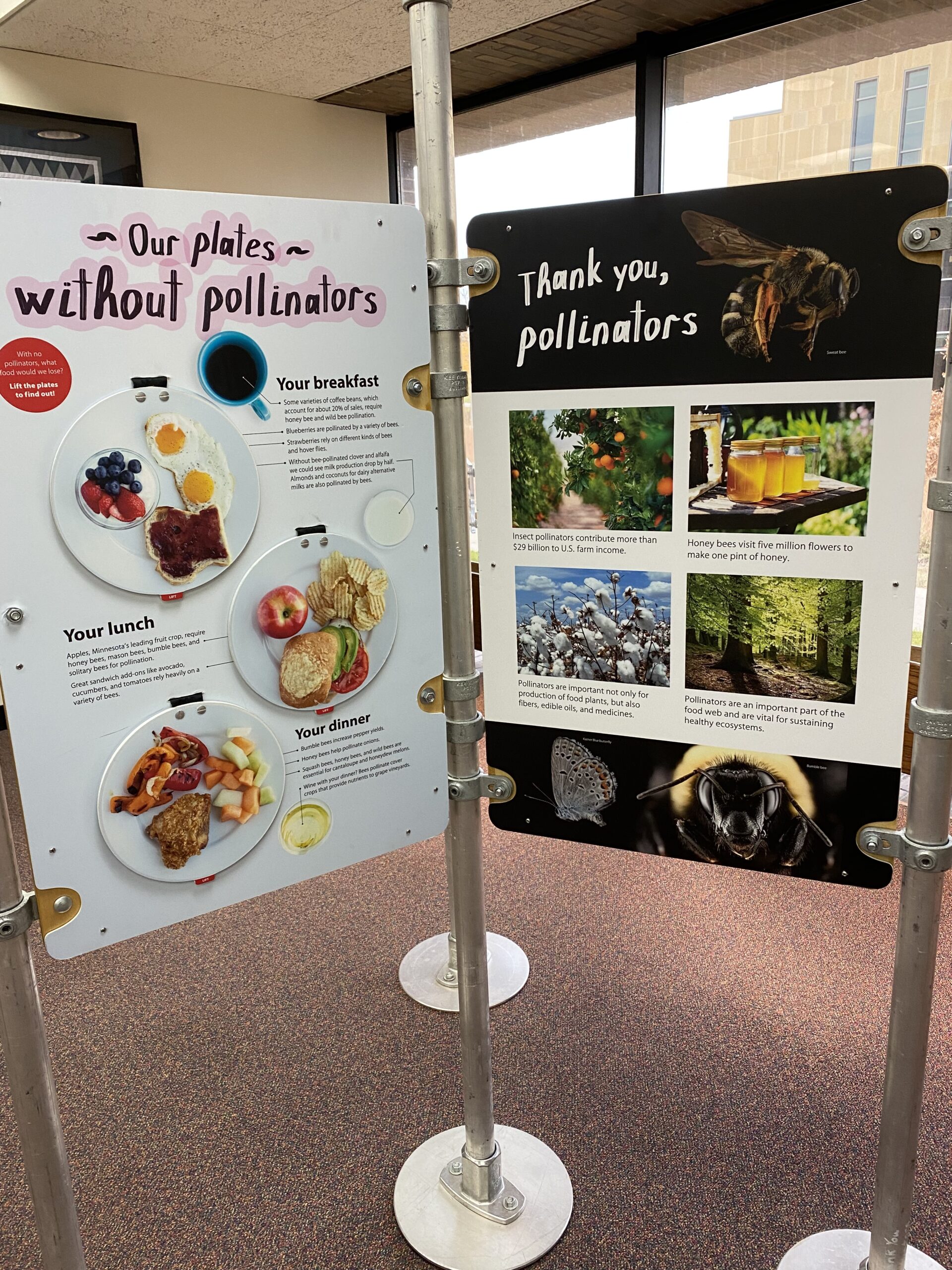 We borrowed a portable interactive exhibit titled “Pollinators” from the Minnesota Pollution Control Agency and Minnesota Department of Education, State Library Services. It is currently on display and located in our GLA Reading room on the main floor of the library. This exhibit explores the importance of insect pollinators for the production of many of the foods we eat. It also shows the challenges to survival these insects face and ideas as to how we can help these pollinators. Please come take a look at it soon because it will only be on display through November 24th.